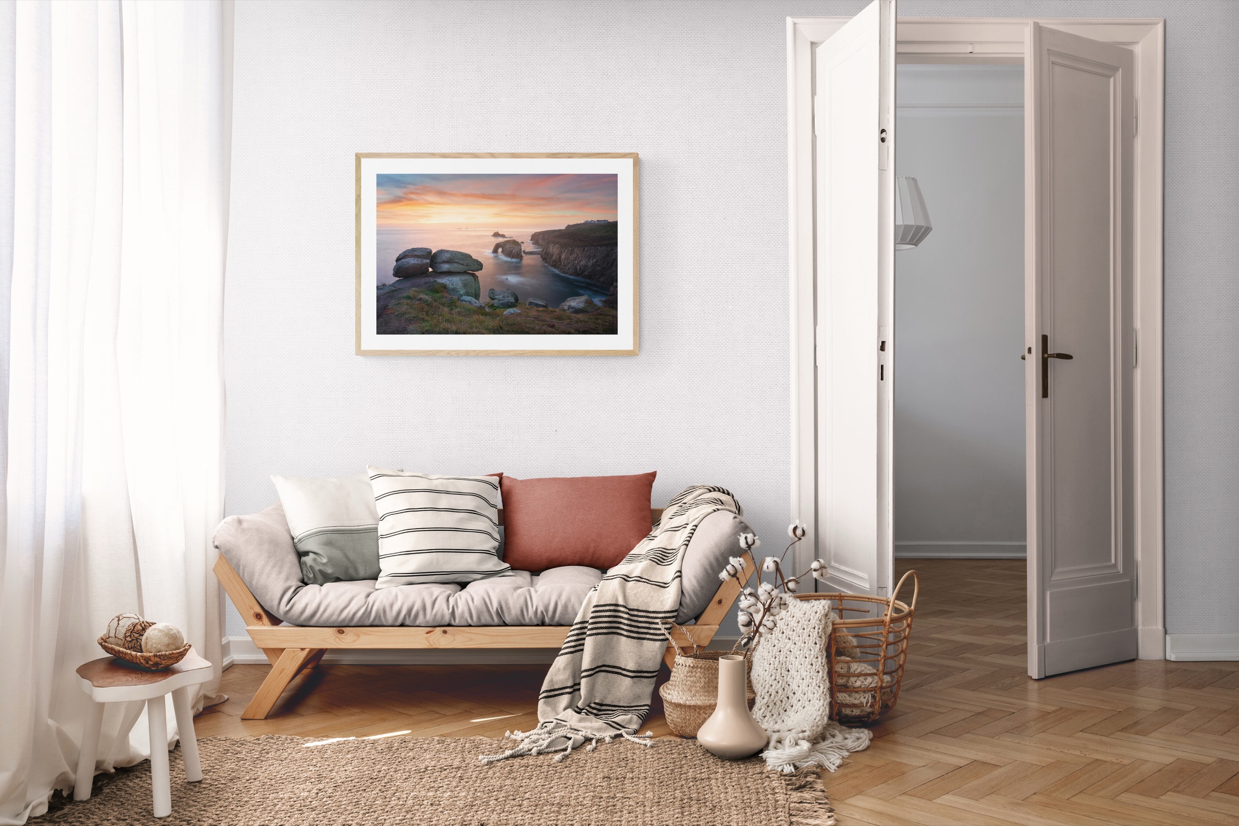 This image holds a story as beautiful as the scene itself. Captured during a late autumn evening in Cornwall with my wife, what began as a seemingly ordinary sunset became something extraordinary. As the sun dipped below the horizon, the conditions felt underwhelming—my wife was freezing, and I was ready to pack up my camera. But she insisted we stay, trusting what we’d learned from countless sunsets together: the magic often arrives in the afterglow, those fleeting moments just after the sun disappears. She was right. The sky transformed into a vivid, painted masterpiece—rich with color and light that no amount of planning could have predicted. While I captured it with my camera, she recorded a timelapse on her phone, both of us witnessing nature’s reward for patience. This print reminds me that the best moments often come when we choose to wait just a little longer.