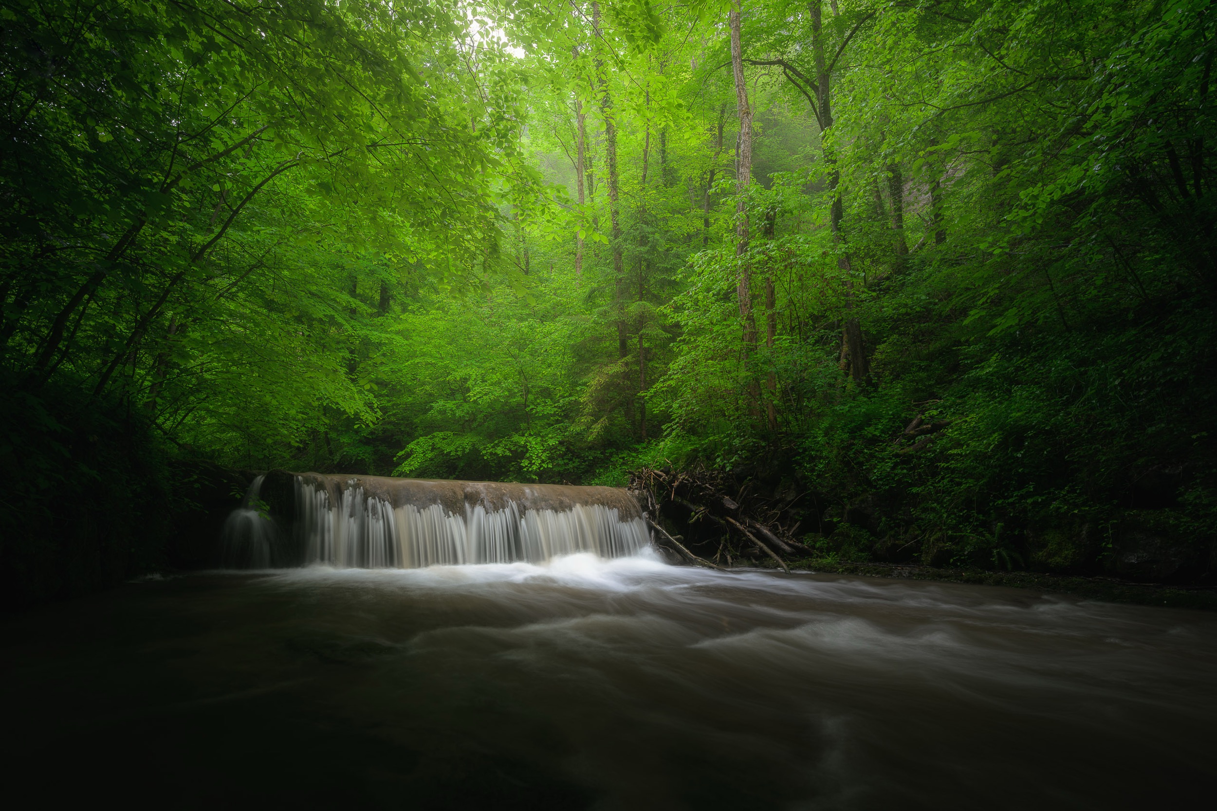 - Spring Forests: Fresh green beech leaves and mist